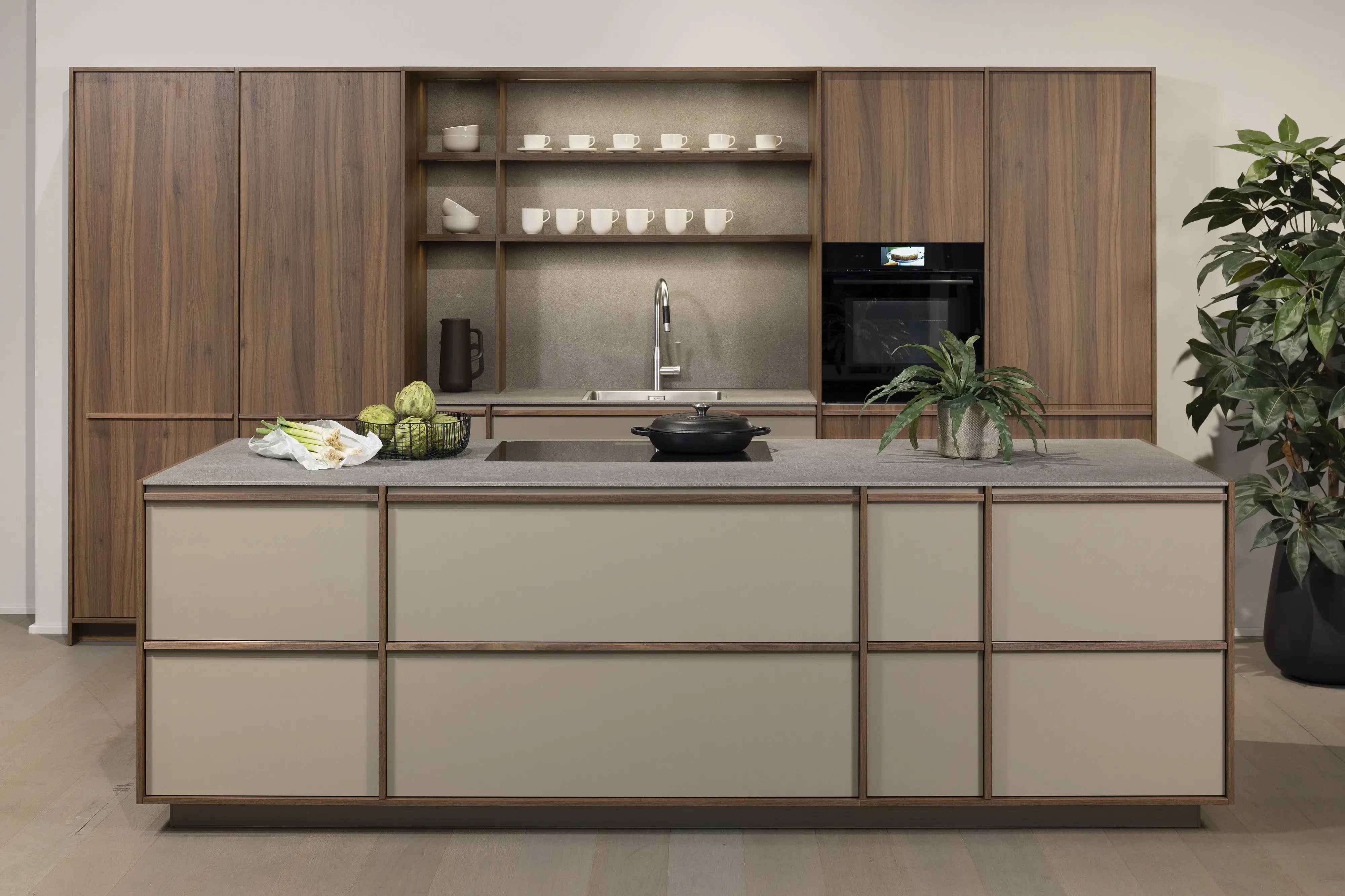 Schon gesehen? Der vom Japandi-Wohnstil inspirierte Trend zu schmal gerahmten Fronten ist ein neuer Hingucker in jeder Küche. „Japandi” steht für die Symbiose aus skandinavischer Natürlichkeit und japanischem Minimalismus. Charakteristisch hierfür ist die großflächige Kassettierung mit natürlicher Holzoptik. Dadurch entsteht eine Balance aus Eleganz und Behaglichkeit.
