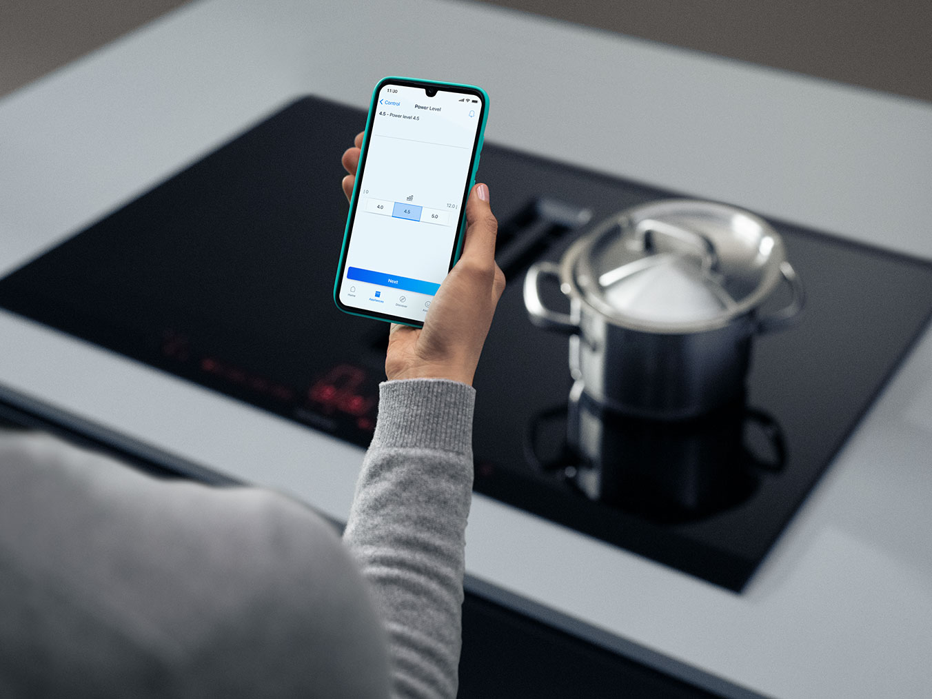 Werden Sie auf Ihrer Smartwatch benachrichtigt, wenn das Abendessen fertig ist oder fragen Sie Ihren smarten Lautsprecher (z.B. Alexa), welche Bratsensortemperatur optimal ist. Mit der Favoriten-Funktion können Lieblingsgerichte einfach gespeichert und über das Kochfeld abgerufen werden.
